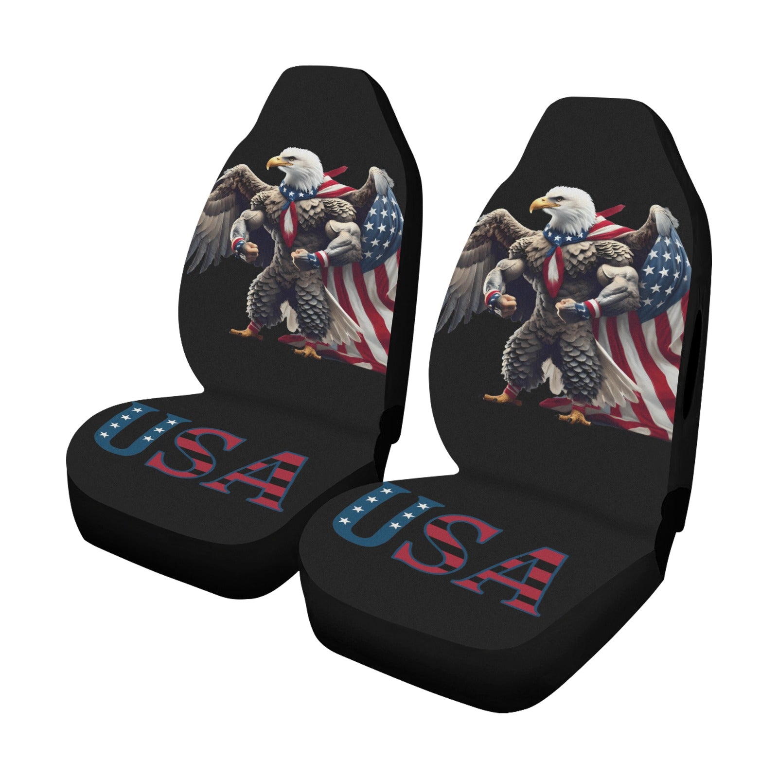 USA/American Flag Inspired Bald Eagle with Cape Car Seat Cover Airbag Compatible(Set of 2, black)