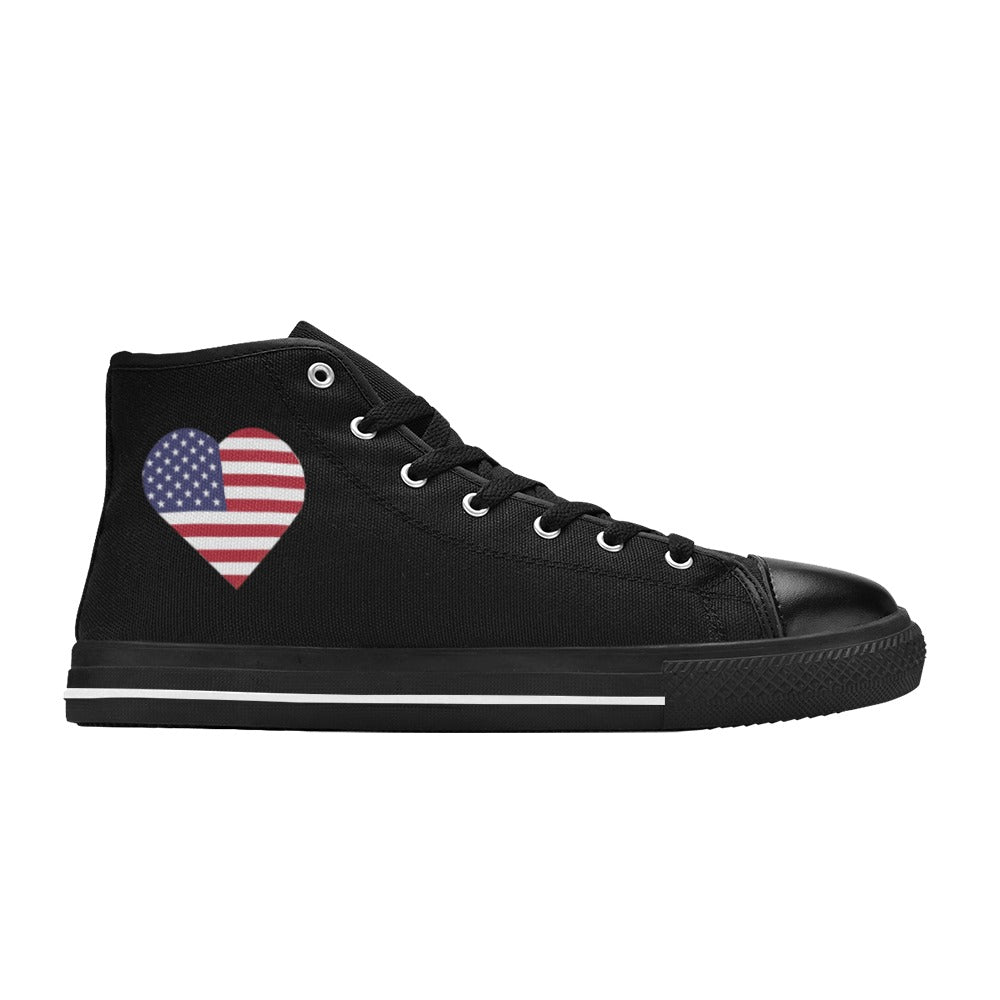 USA/American Flag Inspired Heart Mens High Top Canvas Shoes