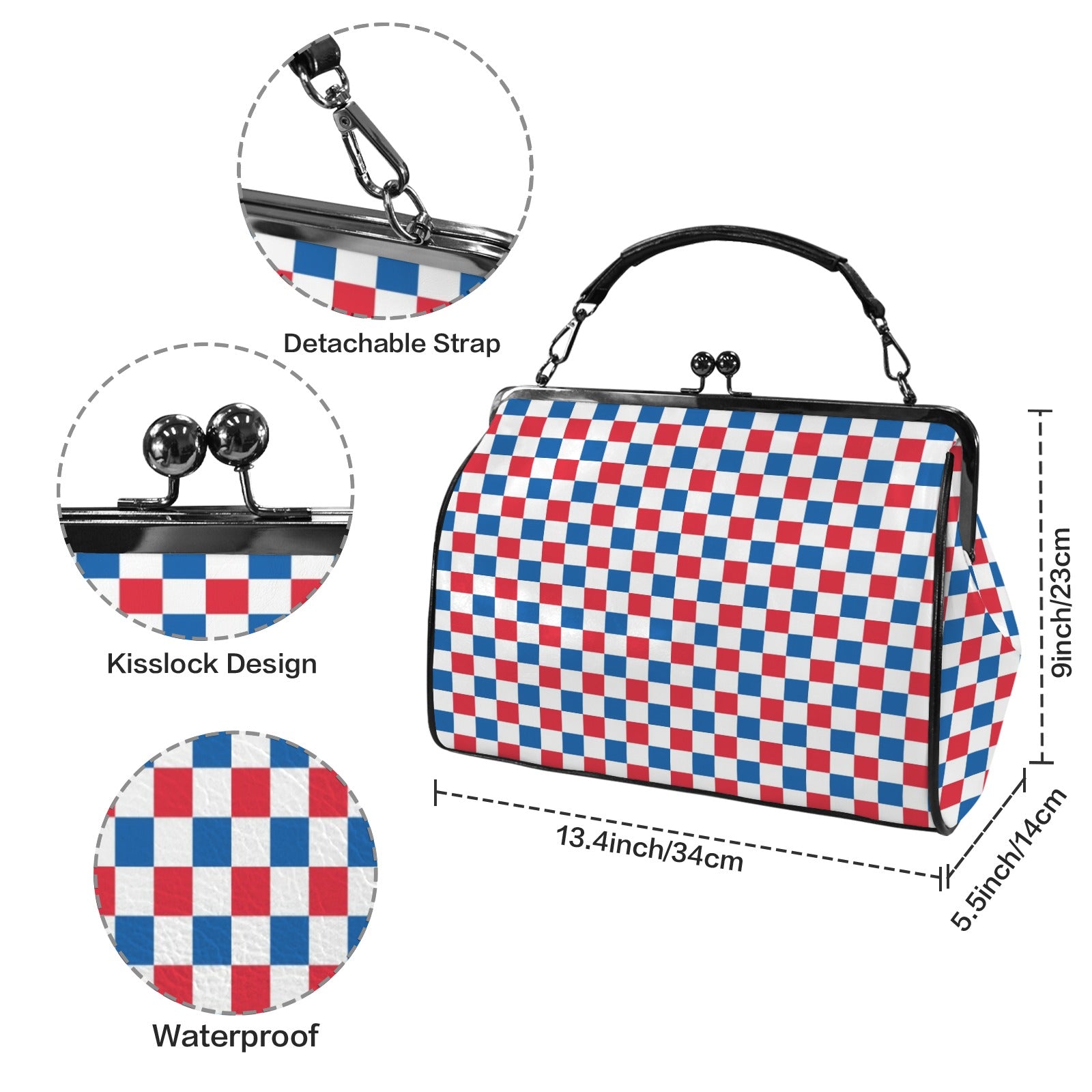 USA/American Flag Inspired Checkered Pattern Kisslock Crossbody Shoulder Bag-Large