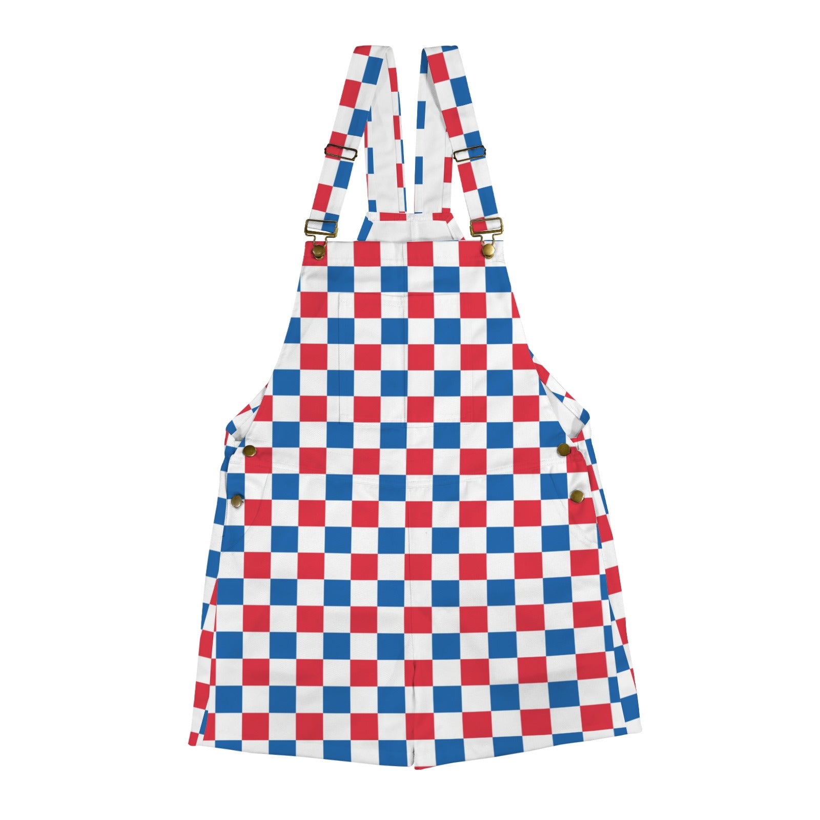 USA/American Flag Inspired Checkered Pattern Unisex Suspender Jumpsuit