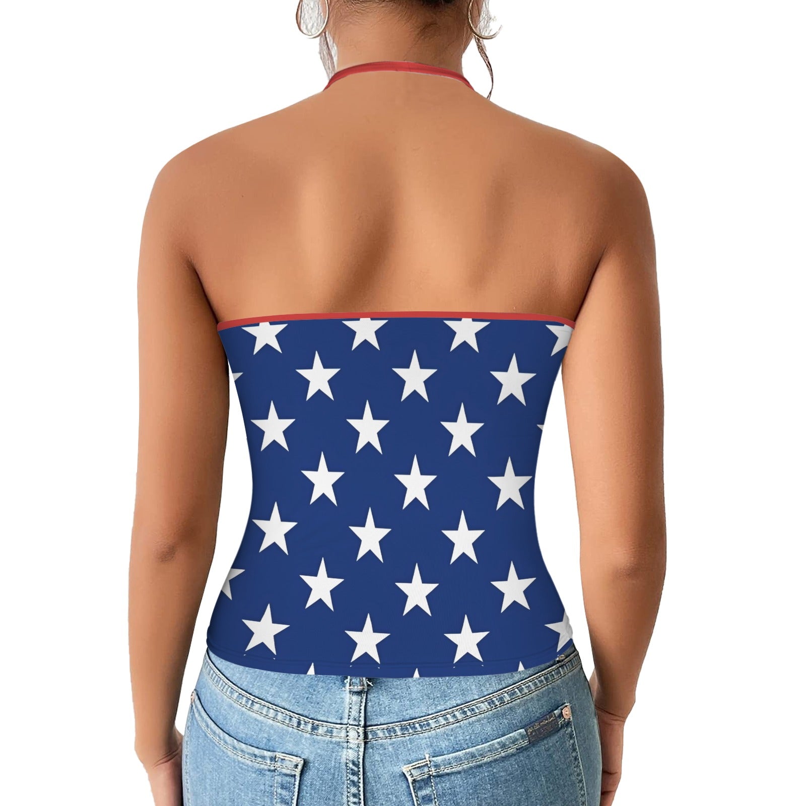 USA/American Flag Inspired V-neck Halter Open Back Tank Top