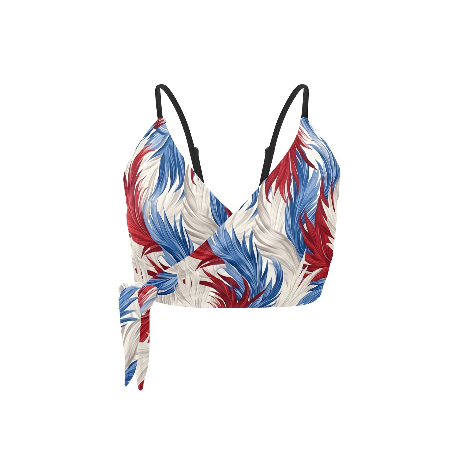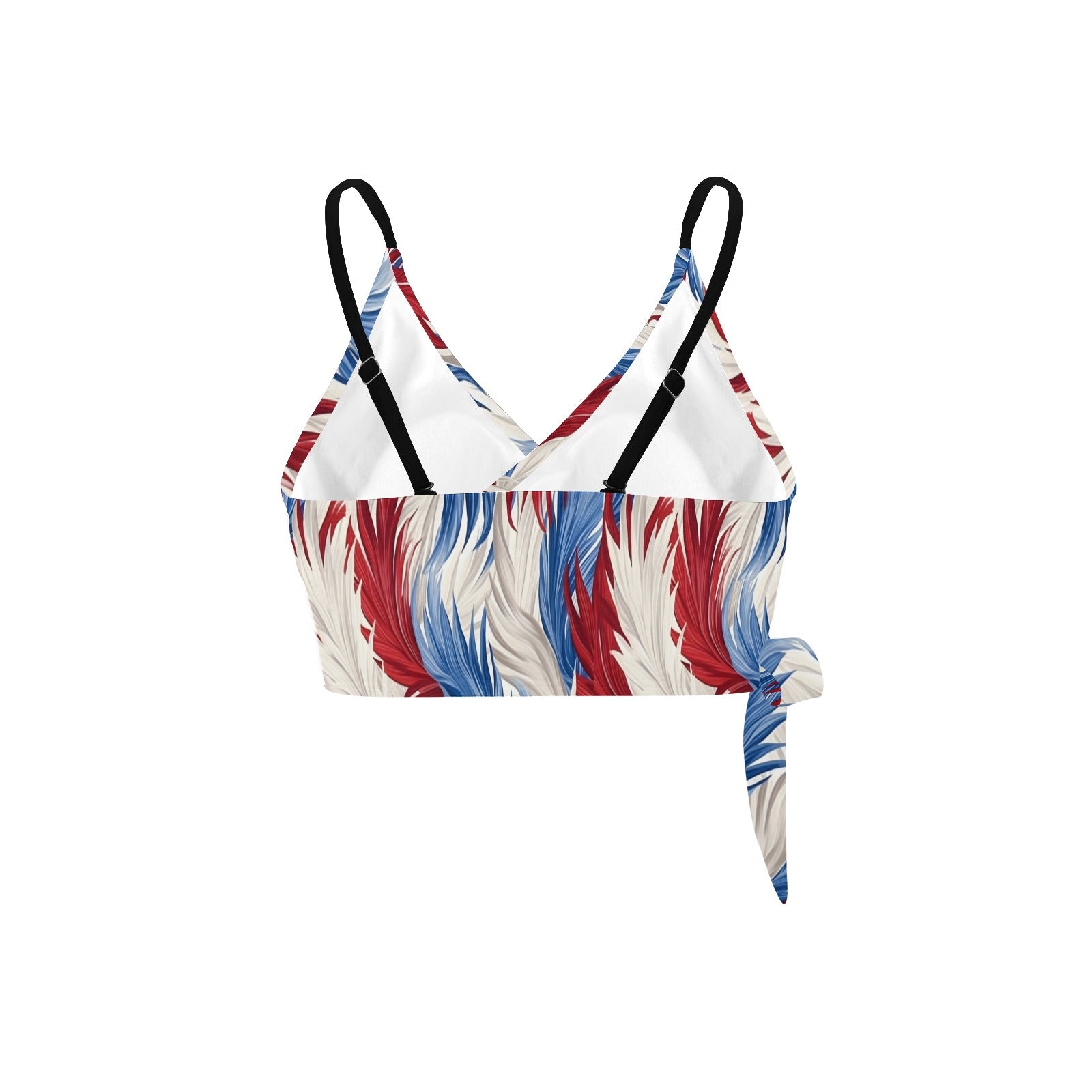 USA/American Flag Inspired Feather Pattern Knot Side Bikini Top