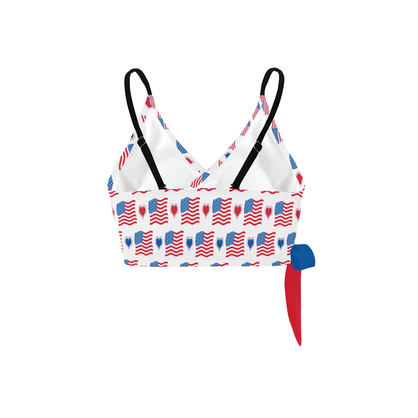 Stand out and celebrate your style with this USA/American Flag Inspired Flag and Hearts Pattern Knot Side Bikini Top. Add it to your collection today.