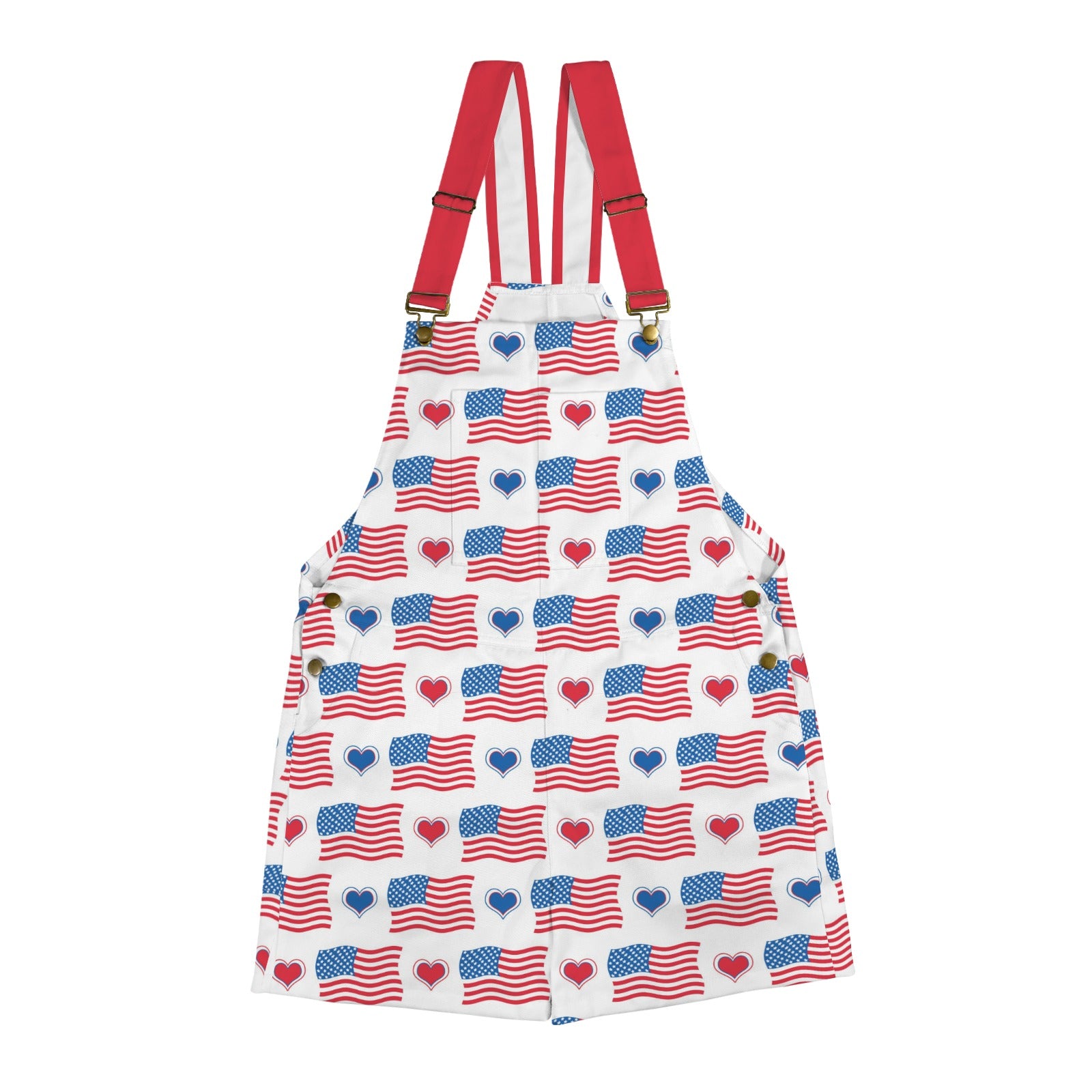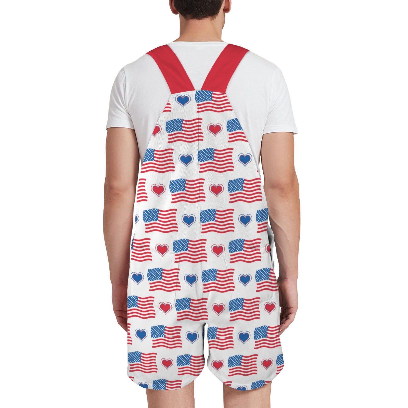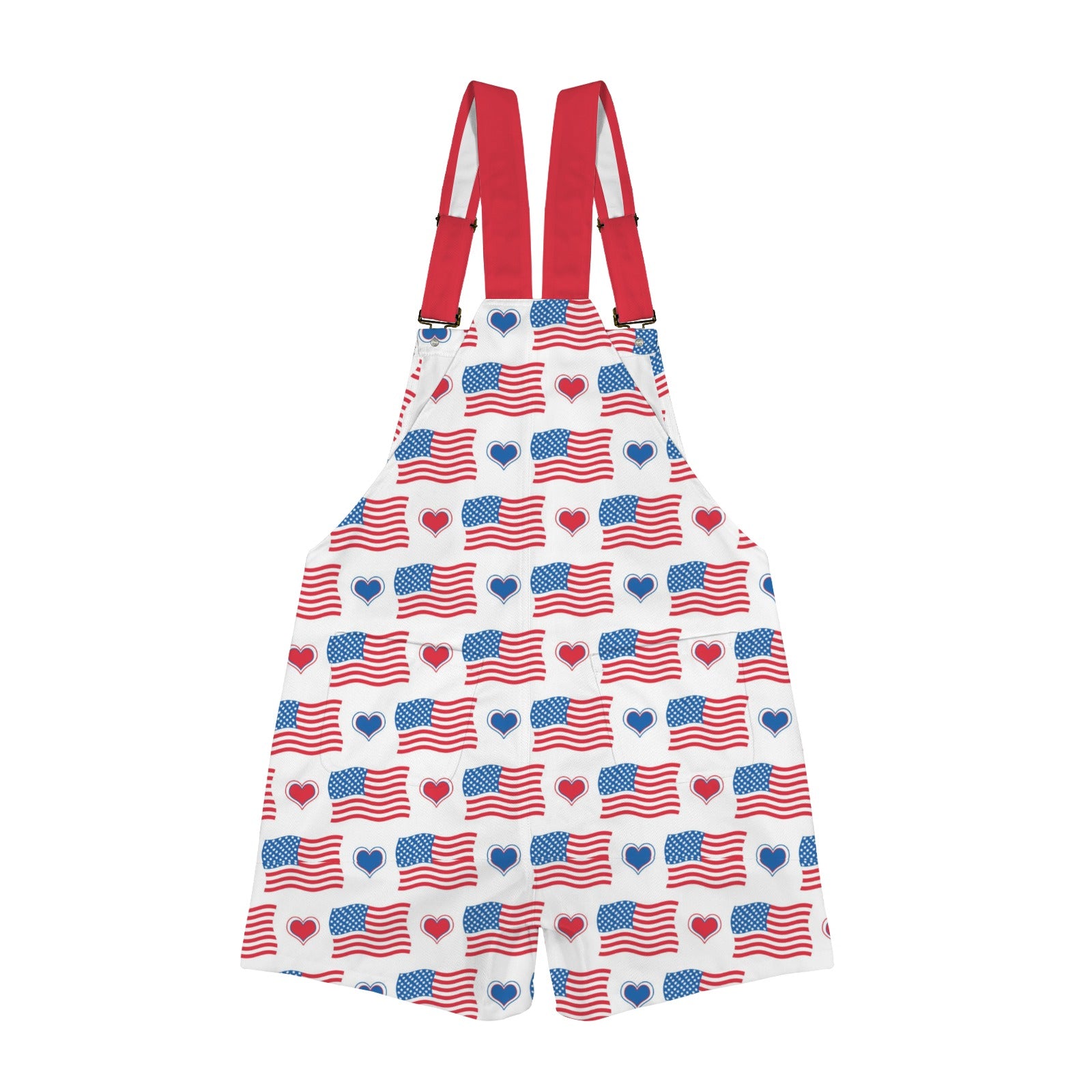 USA/American Flag Inspired Flag and Hearts Pattern Unisex Suspender Jumpsuit