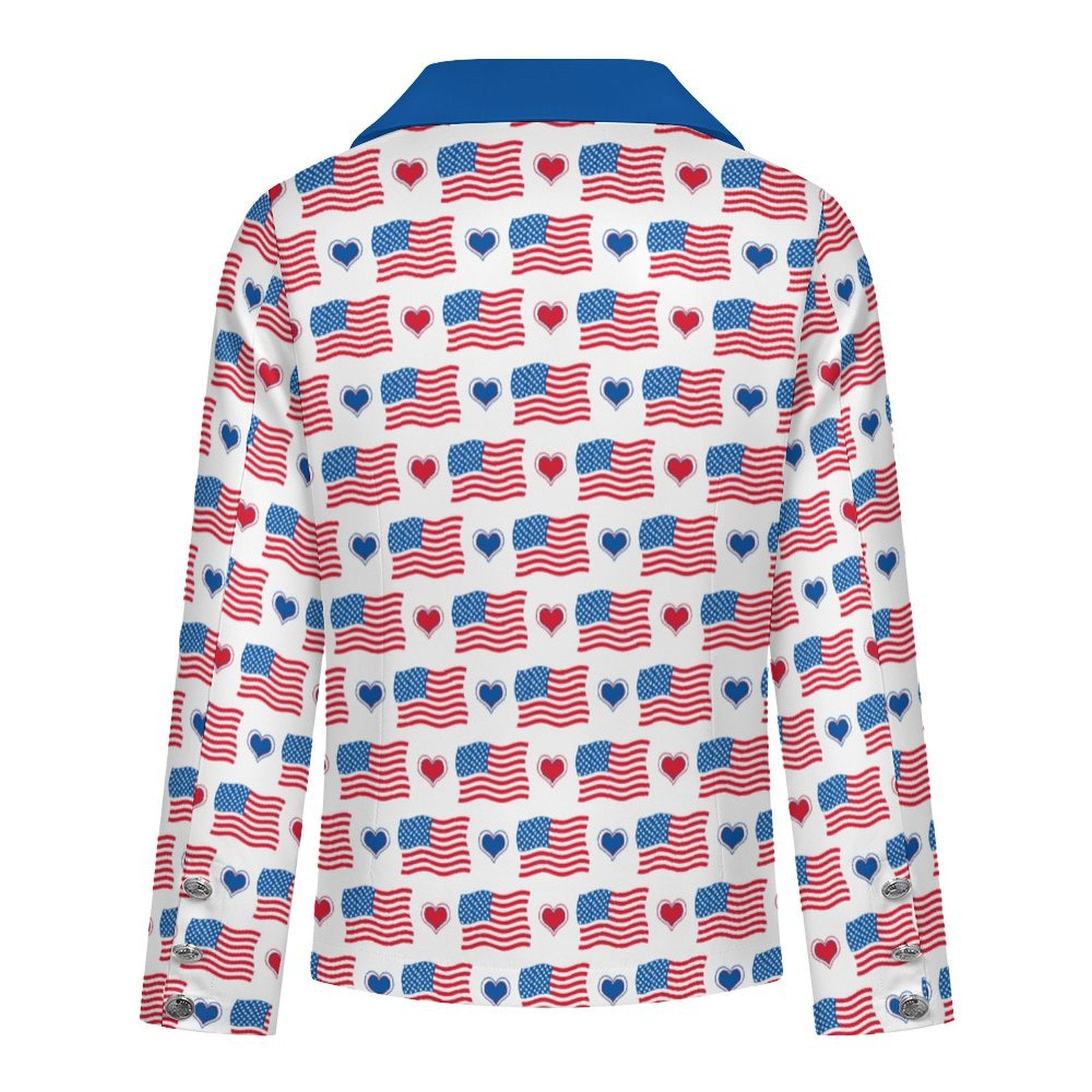USA/American Flag Inspired Flag and Hearts Pattern Women’s Double Breasted Blazer