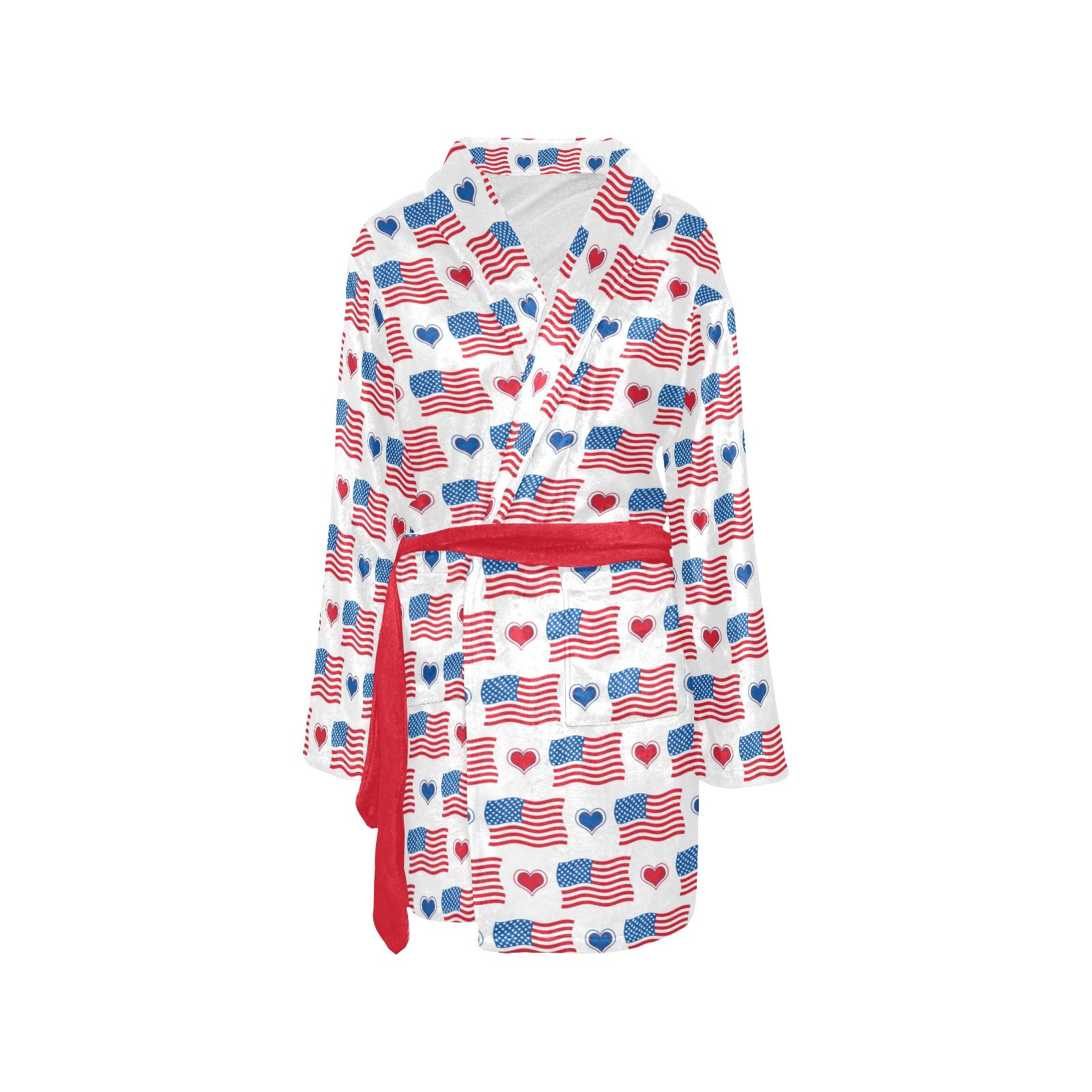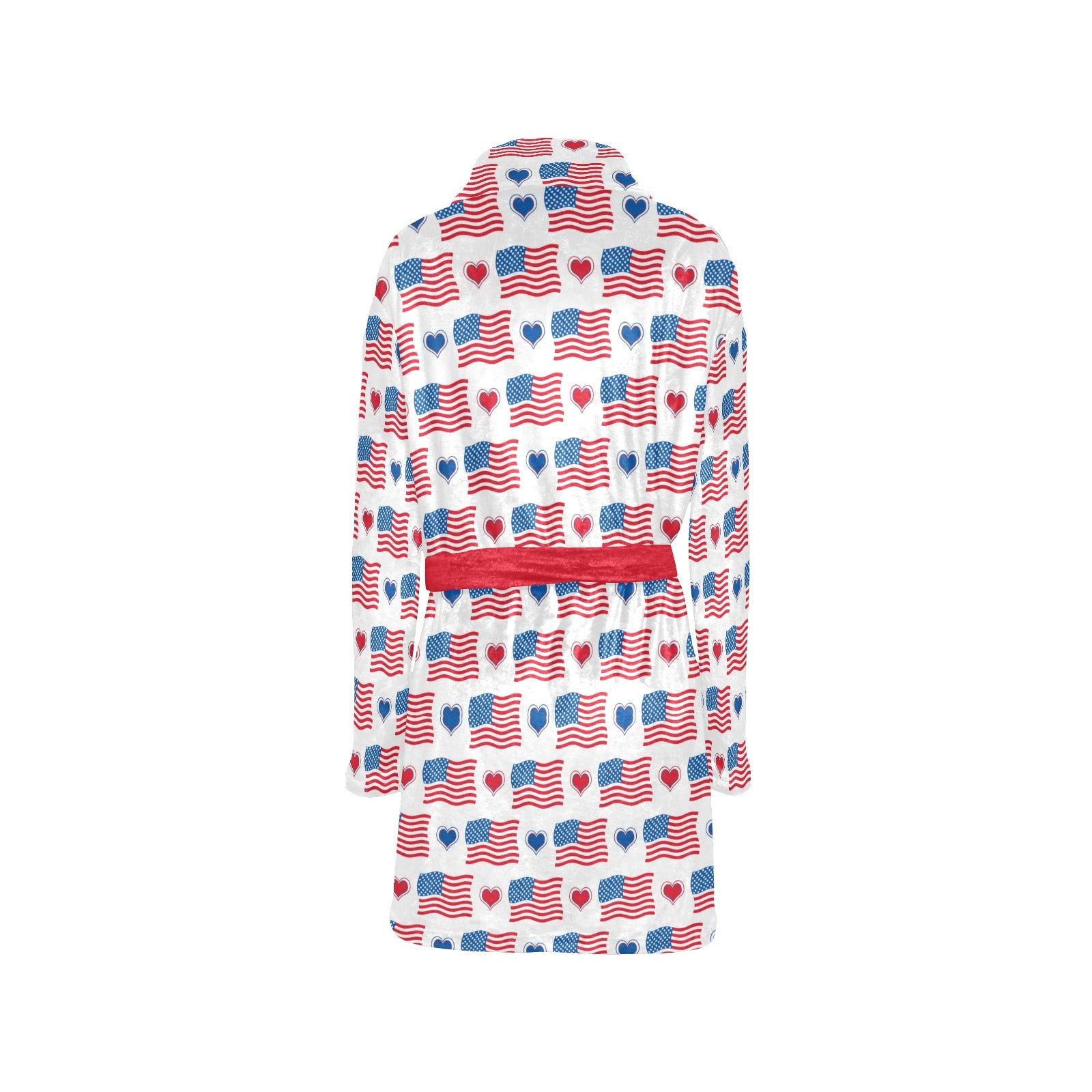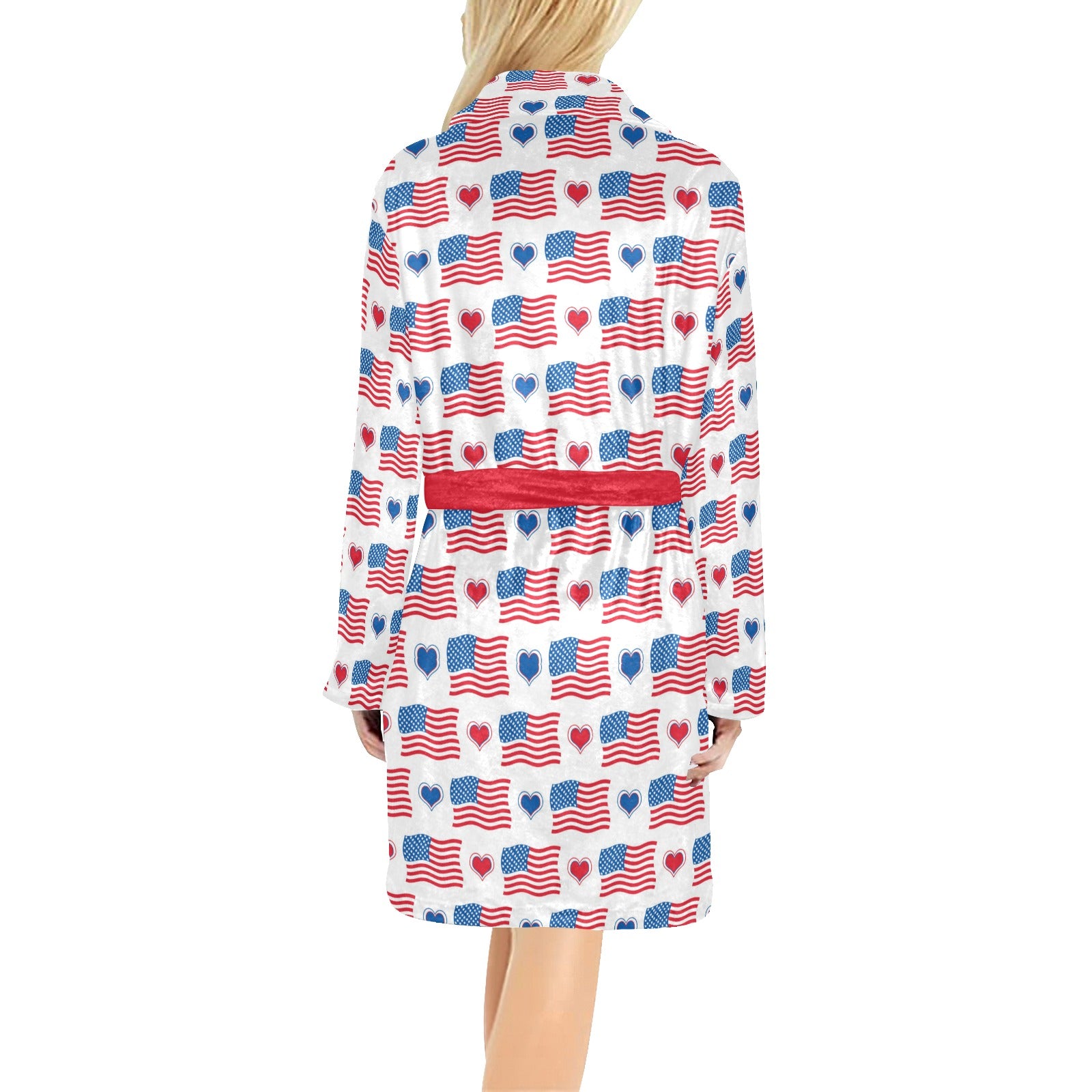 USA/American Flag Inspired Flag and Hearts Pattern Women's Fleece Robe