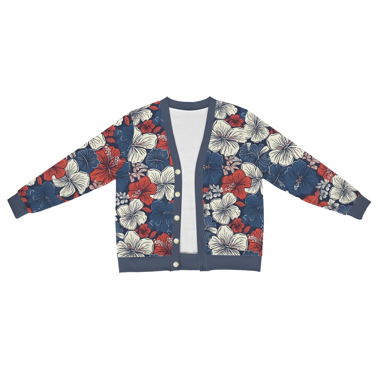 USA/American Flag Inspired Hawaiian Floral Pattern Men's Cardigan