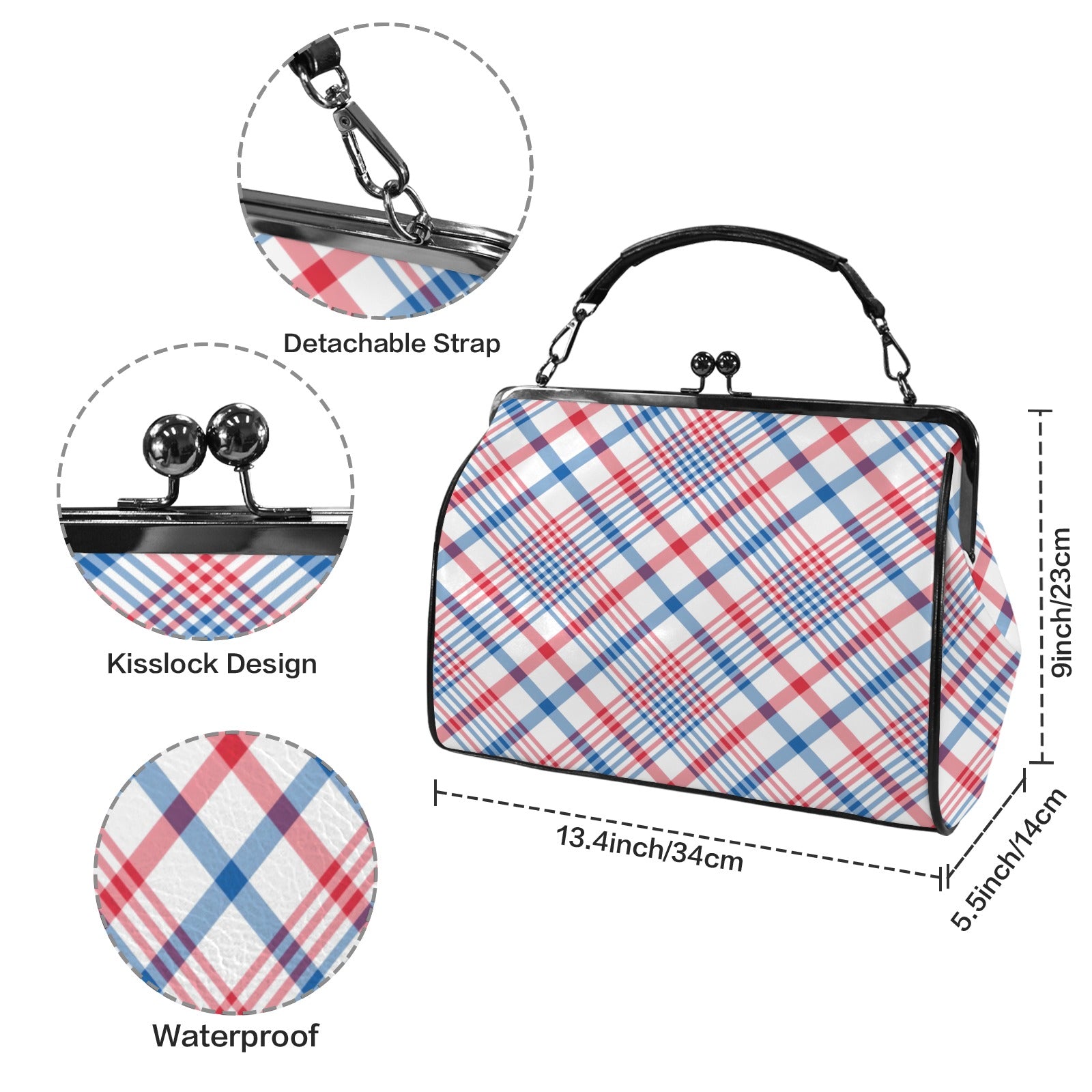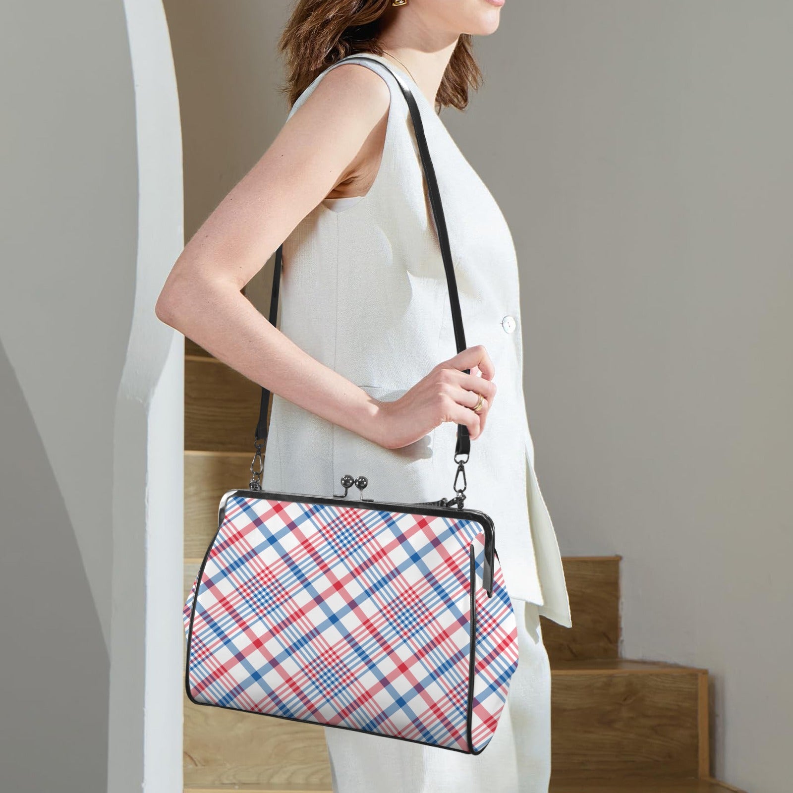 USA/American Flag Inspired Plaid Pattern Kisslock Crossbody Shoulder Bag-Large