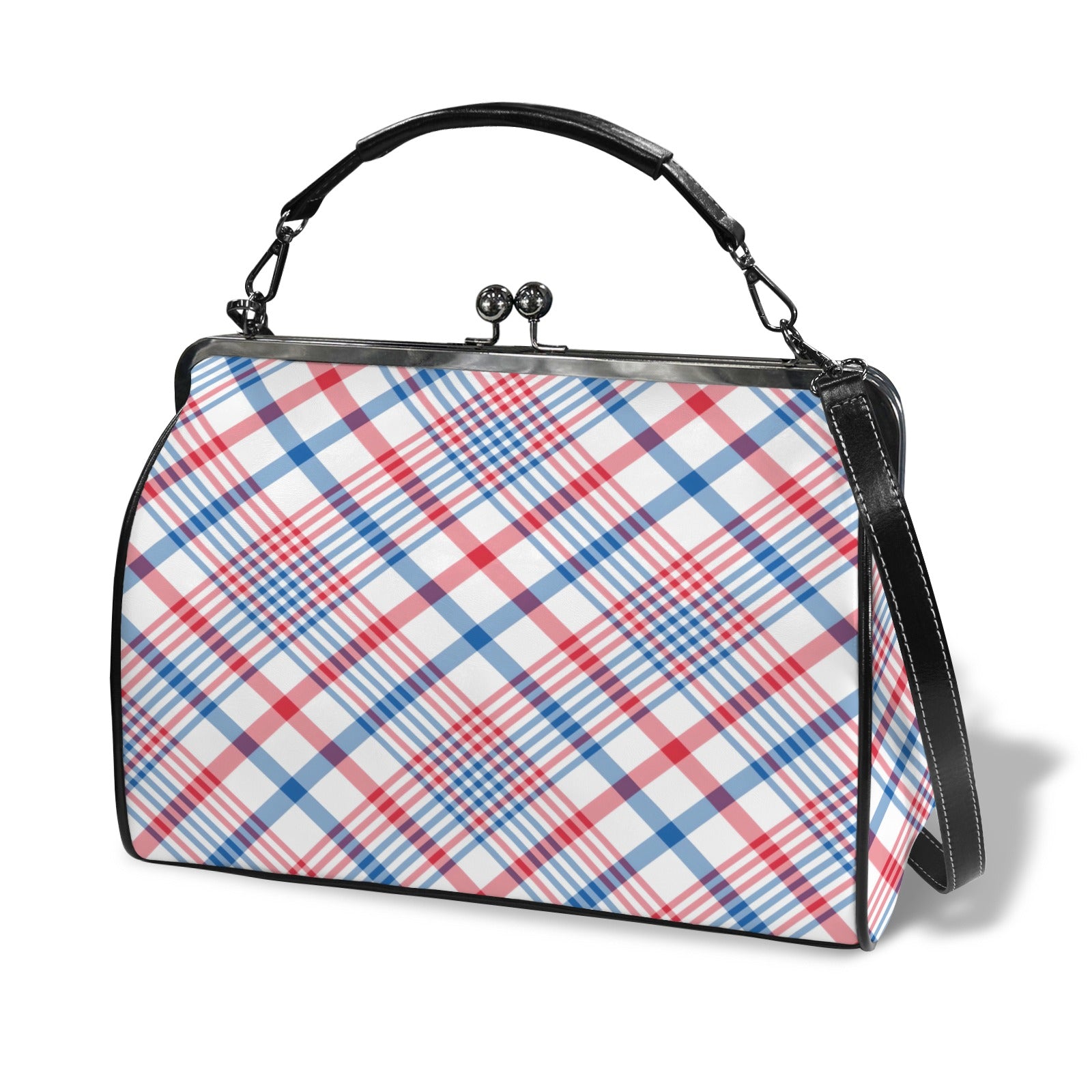 Stand out and celebrate your style with this USA/American Flag Inspired Plaid Pattern Kisslock Crossbody Shoulder Bag-Large. Add it to your collection today.