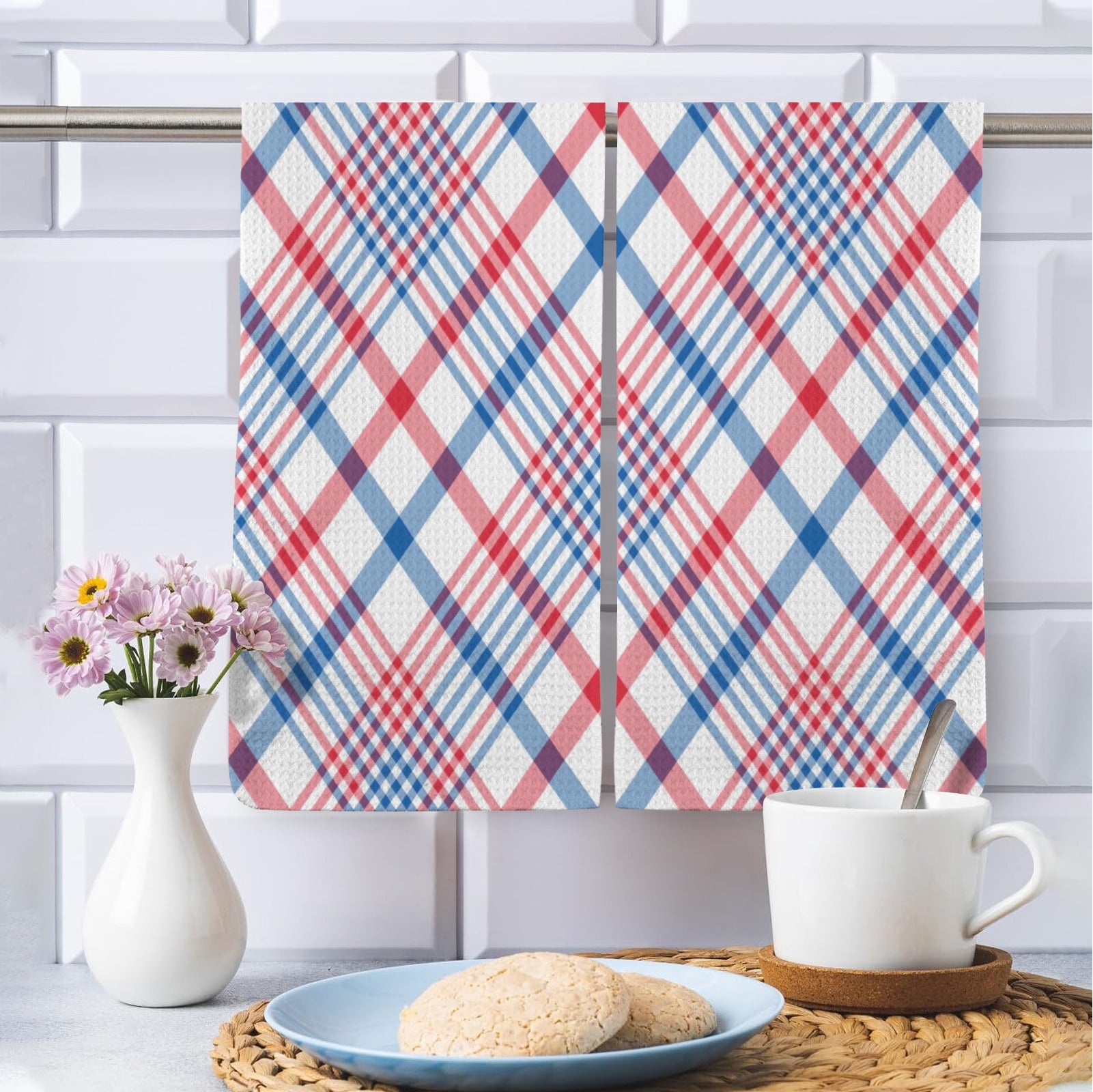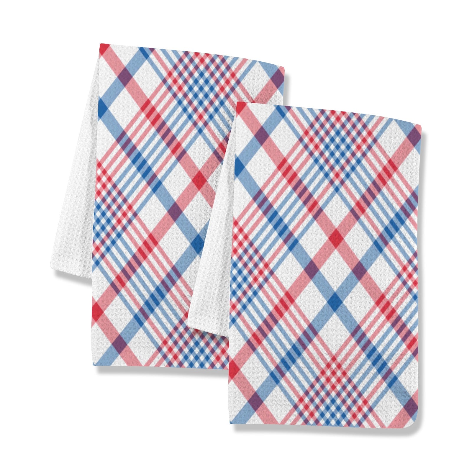 USA/American Flag Inspired Plaid Pattern Kitchen Towel 40X60cm (Pack of 2) (Made in the USA)