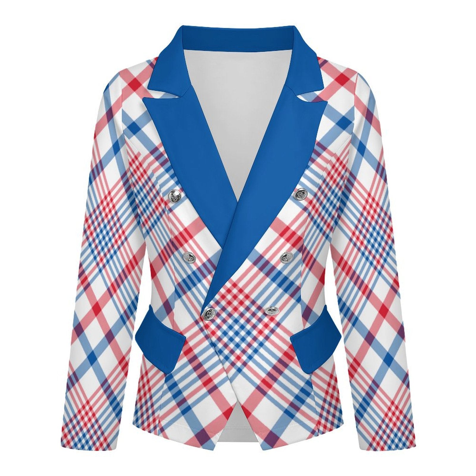USA/American Flag Inspired Plaid Pattern Women’s Double Breasted Blazer
