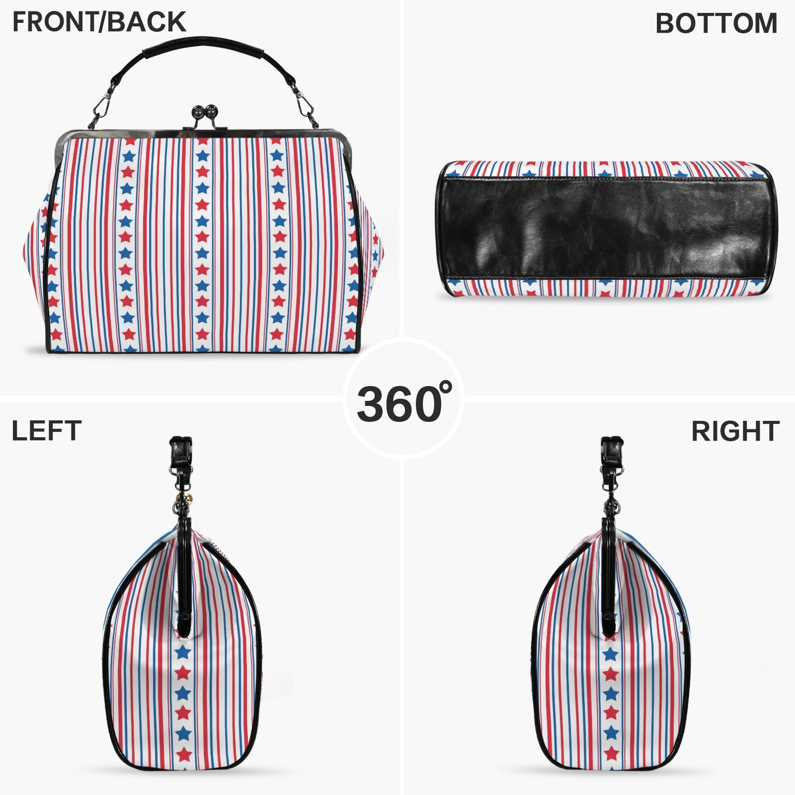 USA/American Flag Inspired Stars & Stripes Pattern Kisslock Crossbody Shoulder Bag-Large
