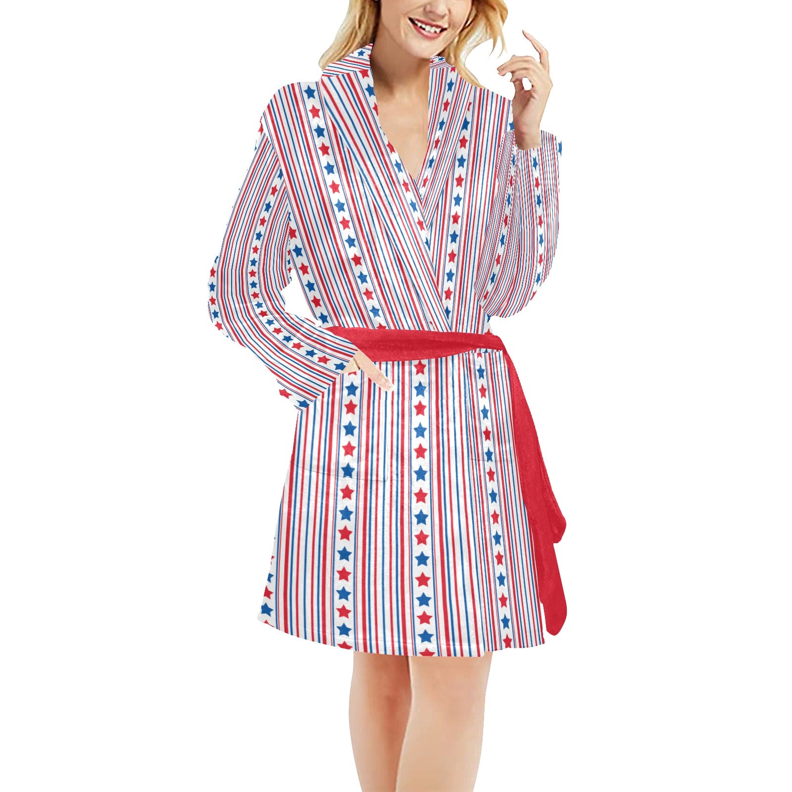 Stand out and celebrate your style with this USA/American Flag Inspired Stars & Stripes Pattern Women’s Fleece Robe. Add it to your collection today.