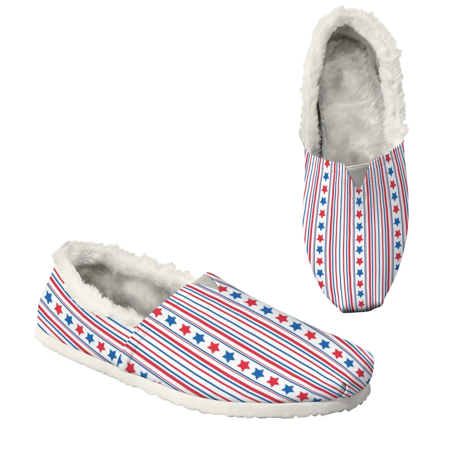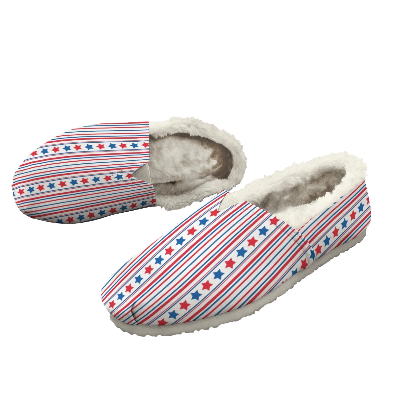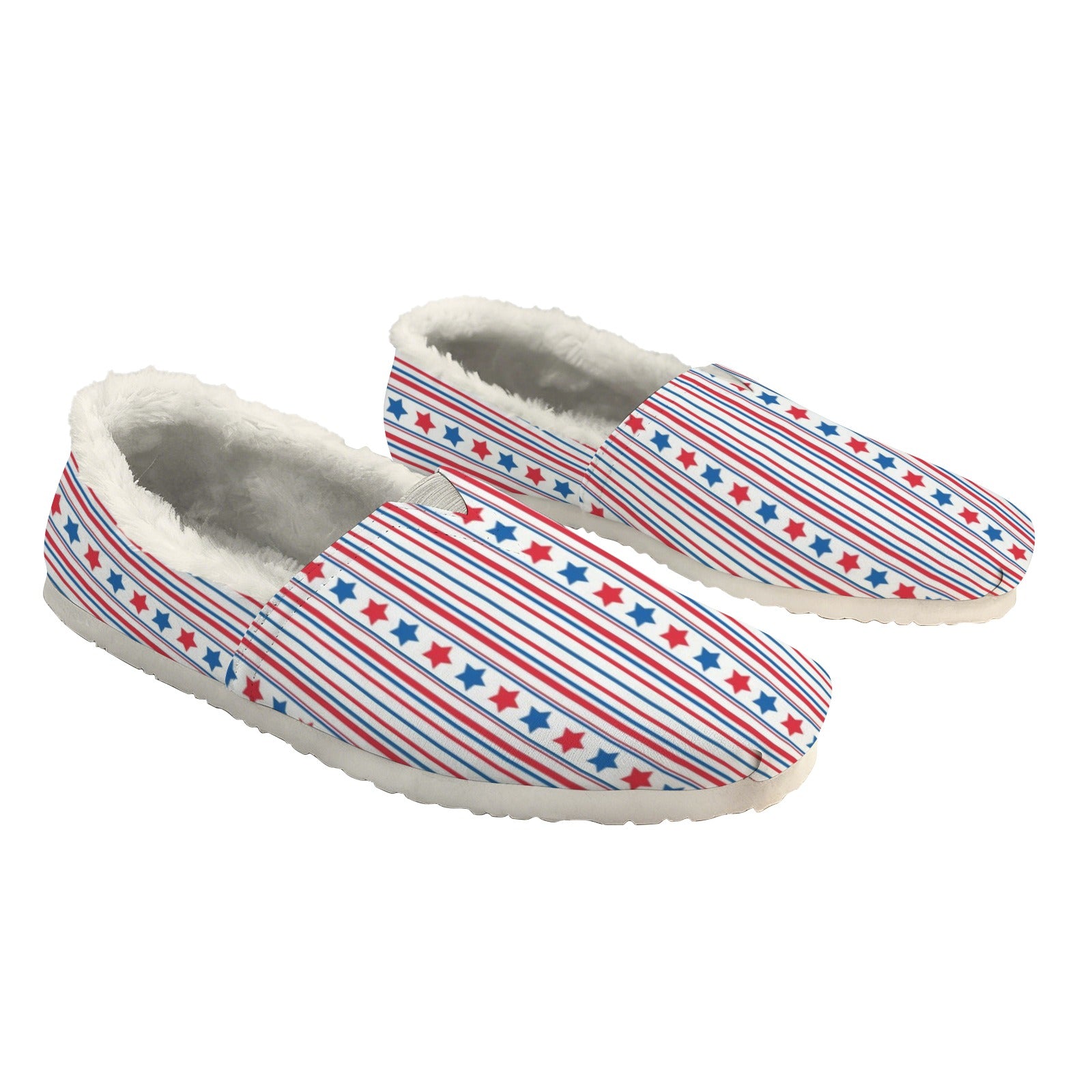 USA/American Flag Inspired Stars & Stripes Pattern Women's Fleece-Lined Canvas Slip-On
