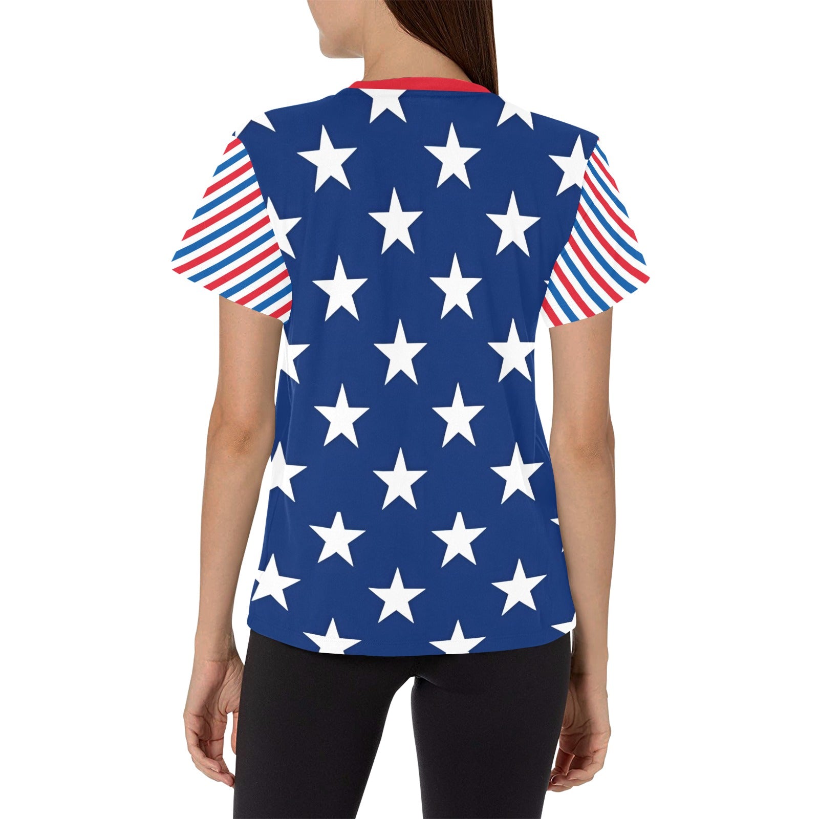 USA/American Flag Inspired Women's All Over Print Crew Neck T-Shirt(T40-2)(Made in Queens)