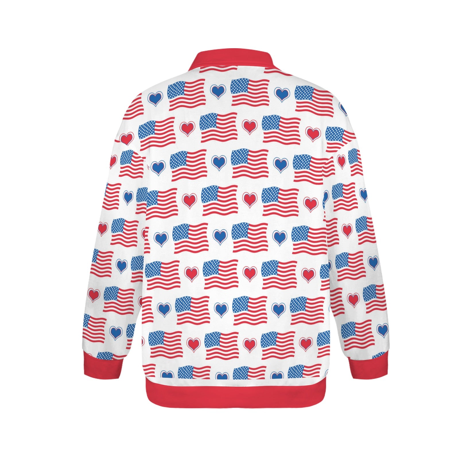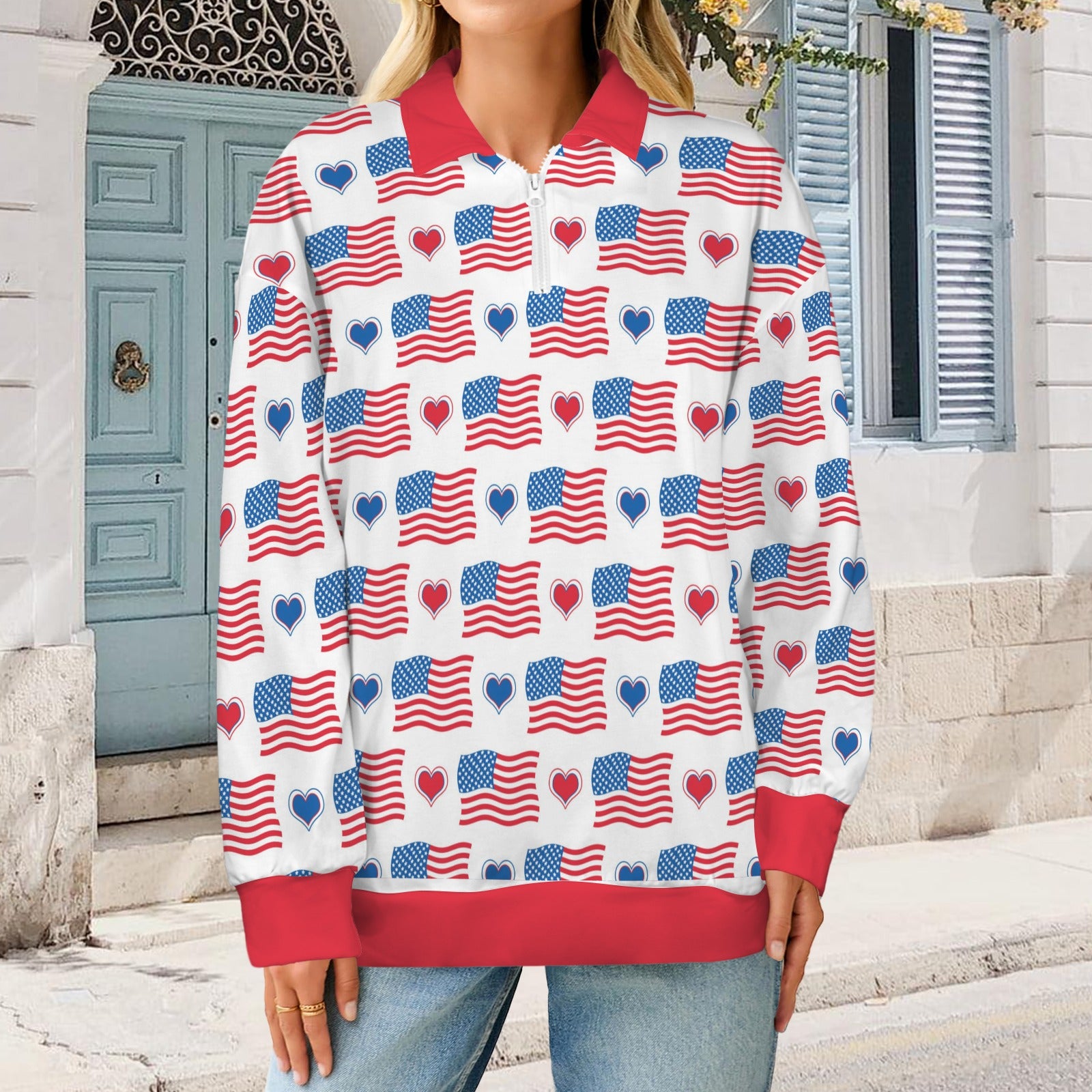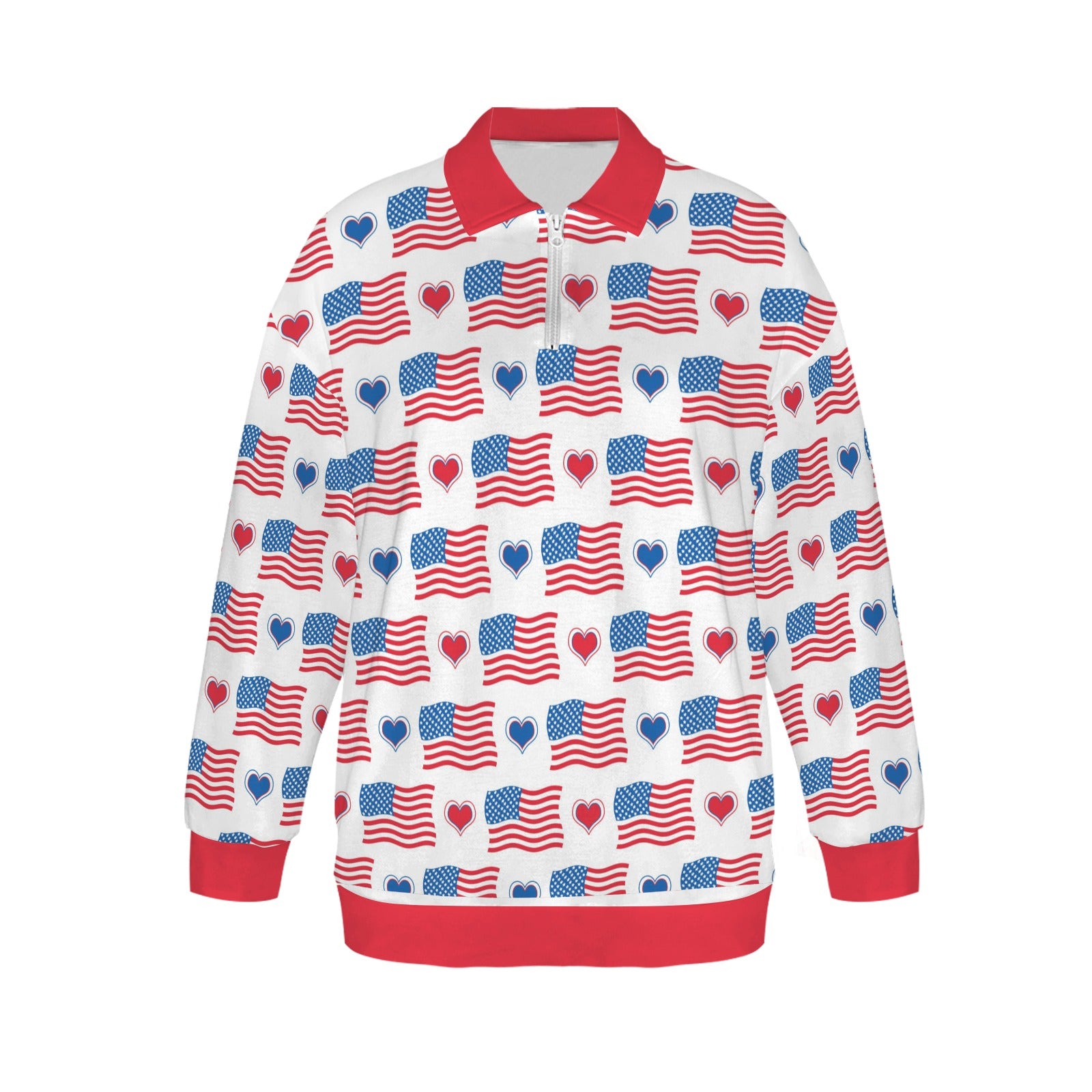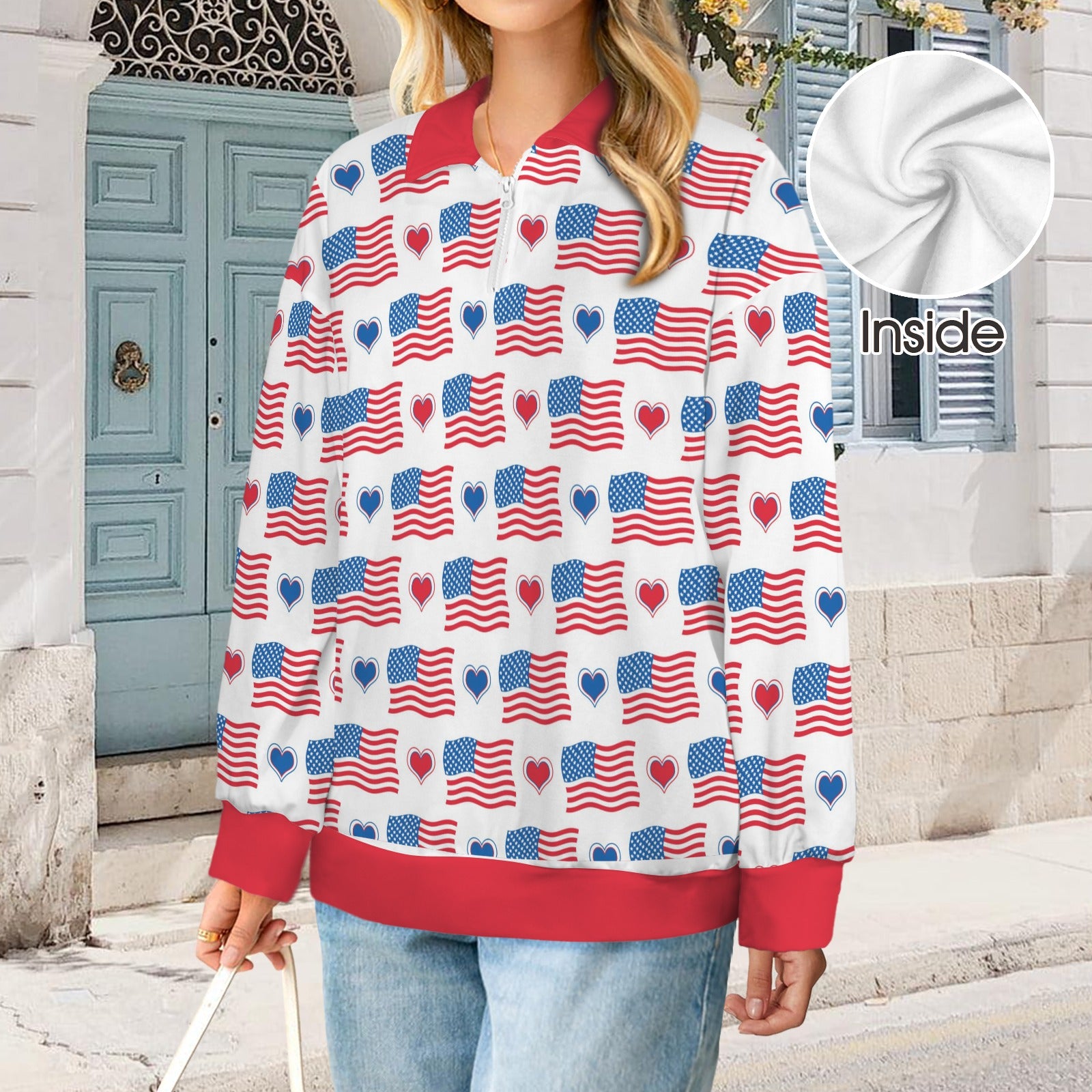 USA/American Flag Pattern Women's Quarter Zip Pullover Sweatshirt