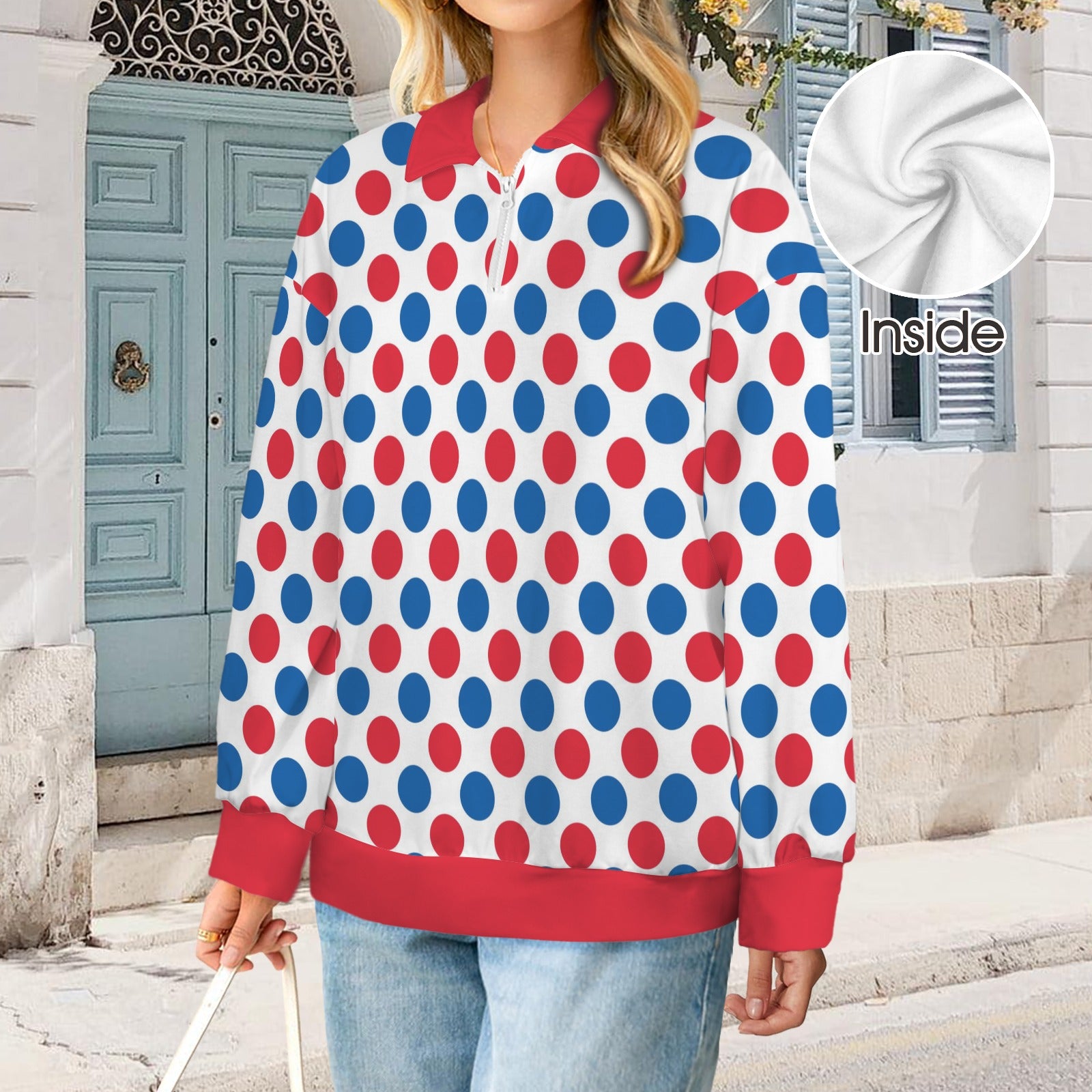 USA/American Flag Polka Dot Pattern Women's Quarter Zip Pullover Sweatshirt