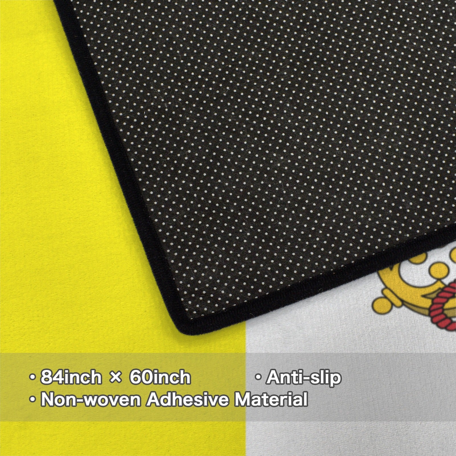 Show your style and pride with our Vatican City Flag Inspired Area Rug with Black Binding (Made in the USA). Designed with quality materials and crafted for impact, this piece is perfect for everyday use or special occasions. This 84×60 in. area rug features flannel with thickened non-woven fabric, a luxurious plush surface, a non-slip bottom with small dots for enhanced grip, and a black fixed bias binding for a clean, polished finish.