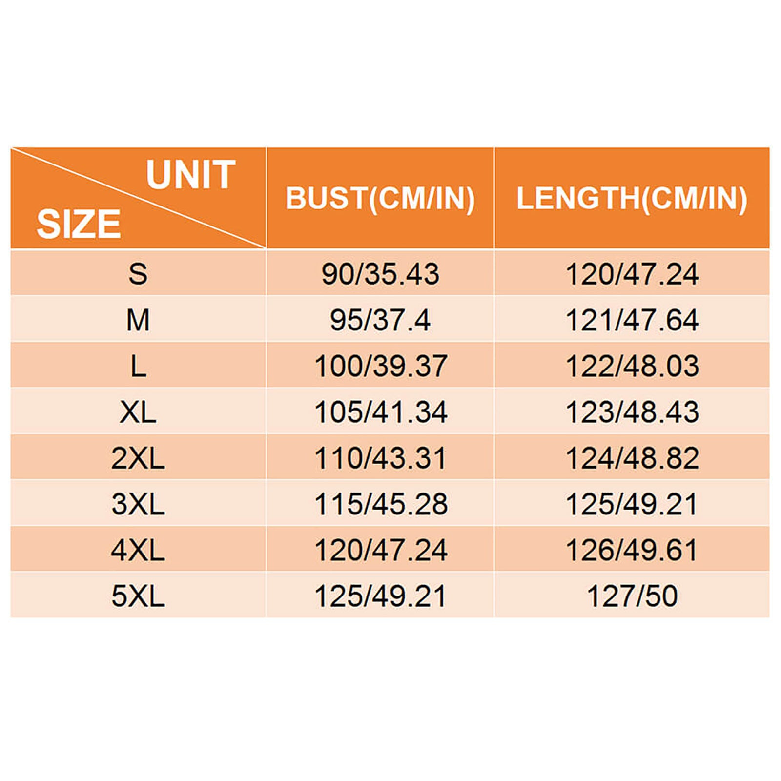 • Available sizes: S, M, L, XL, 2XL, 3XL, 4XL, 5XL